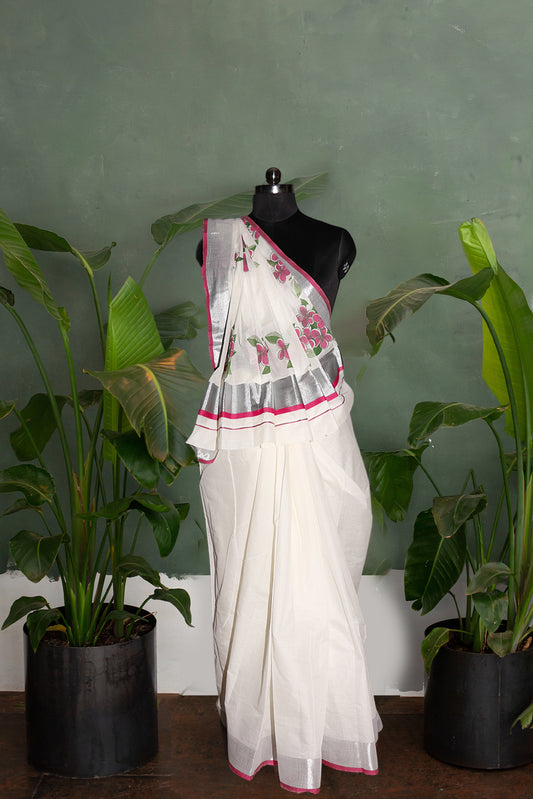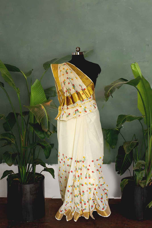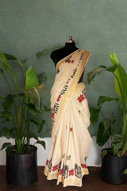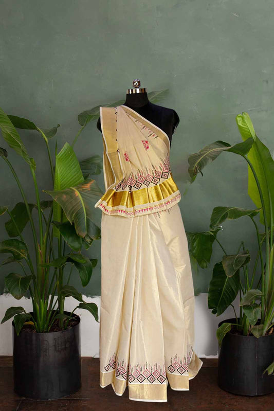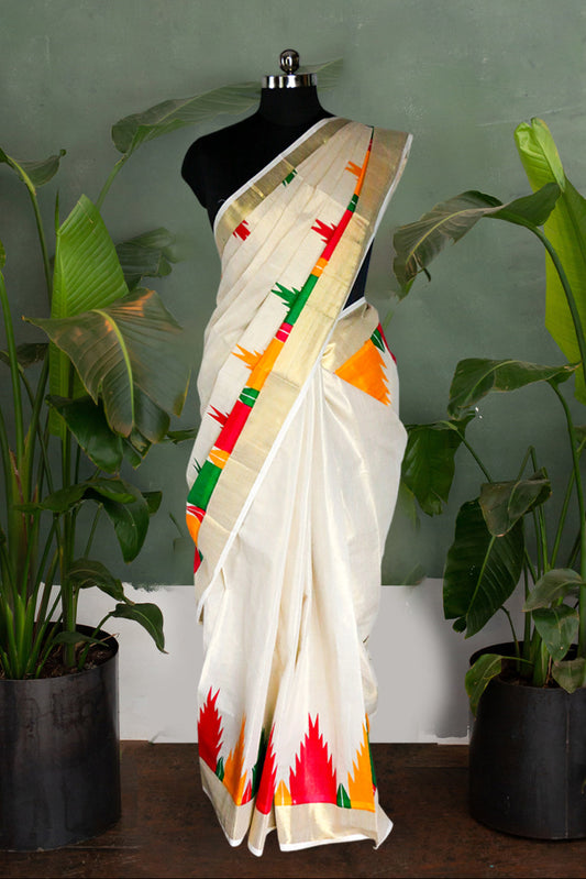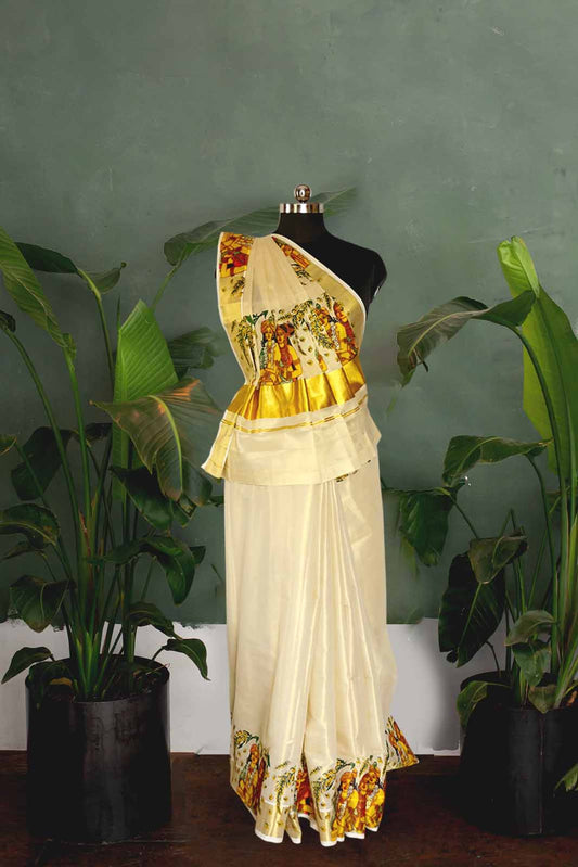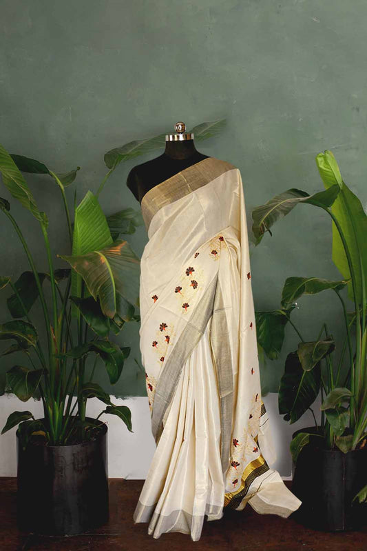 Step into the rich legacy of Kerala with our Traditional Sarees, which showcase intricate craftsmanship and cultural authenticity. Handloomed with precision, these sarees feature unique motifs inspired by nature, mythology, and temple art. The iconic kasavu detailing is meticulously crafted, making each saree a piece of art. Kerala Traditional Sarees are a staple for weddings, rituals, and other grand celebrations, reflecting the cultural pride of God’s Own Country. Pair them with traditional blouses and antique jewelry for an unforgettable look steeped in heritage.