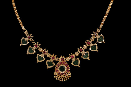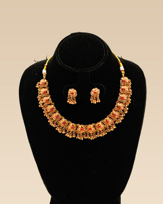 Lakshmi-Peacock Kemp Coin Necklace Set