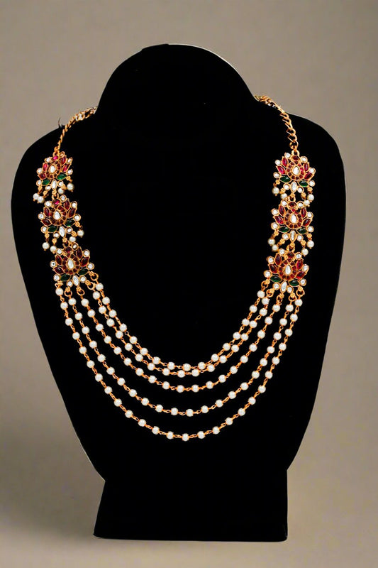 Pearl Necklace/Choker With Earings( Ruby stone)