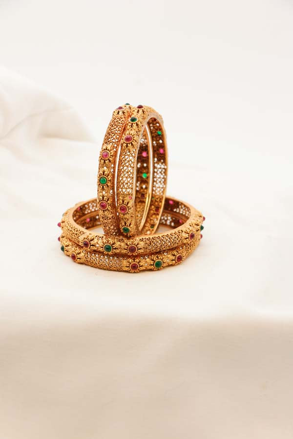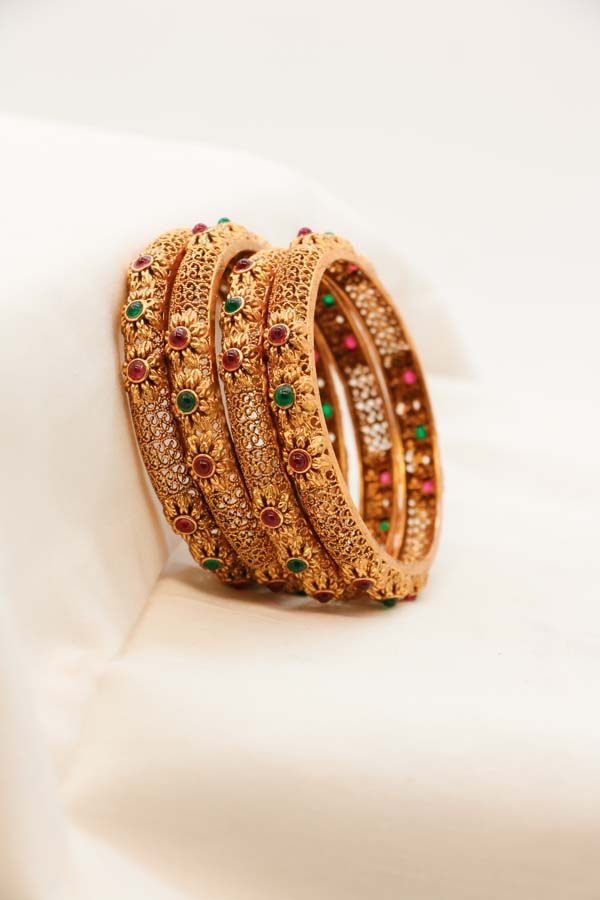Elevate your jewelry collection with Ninikaa's Flora Bangles, a masterclass in intricate design and wearable artistry. These bangles feature an exquisite latticed framework interwoven with botanical flourishes, creating a dynamic interplay of light and shadow. The precision engineering ensures structural integrity while maintaining an ethereal quality that complements diverse styling preferences. Crafted for the sophisticated wearer, they transition effortlessly from ceremonial occasions to refined daily wear. The delicate floral elements add dimension without overwhelming, making these bangles an ideal choice for those who value understated luxury and nature-inspired aesthetics in their personal adornment.