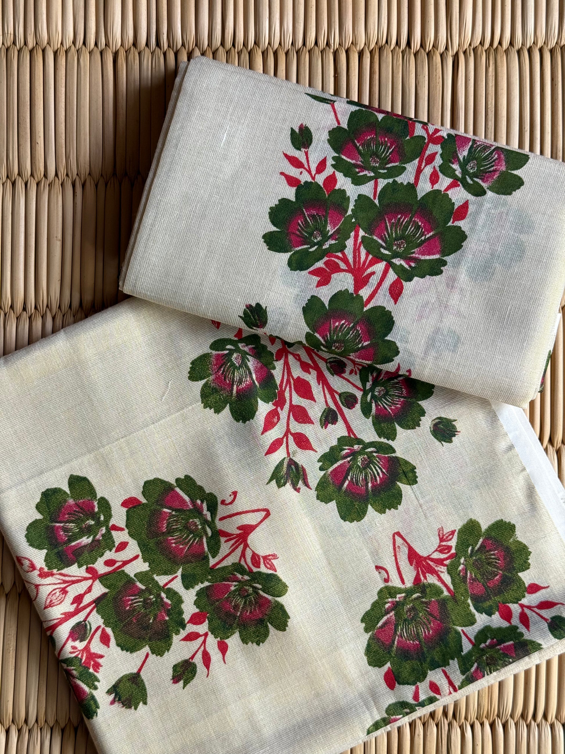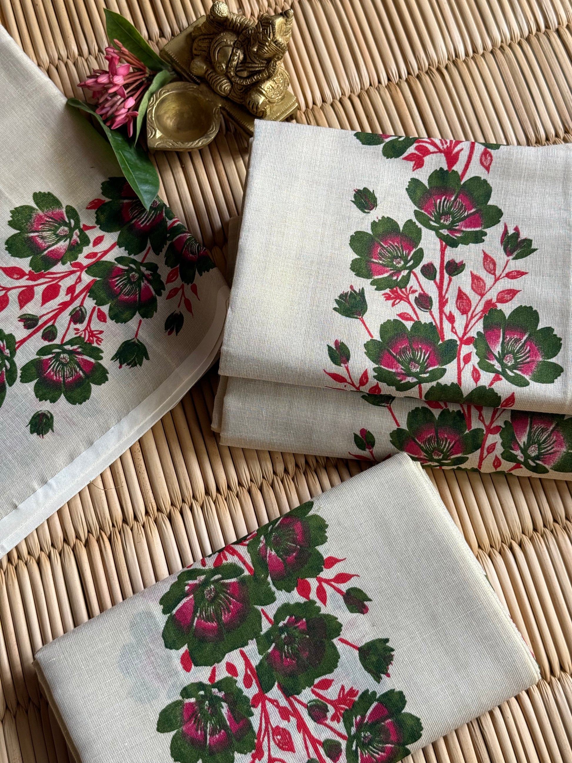 Add this exquisite Floral Kerala Tissue kasavu set mundu to your collection, and embrace every special occasion with timeless style and charm.