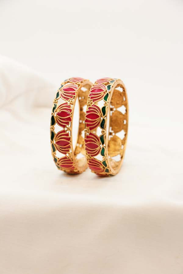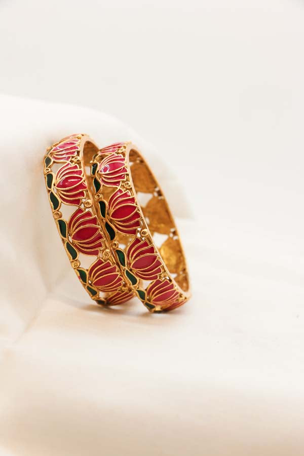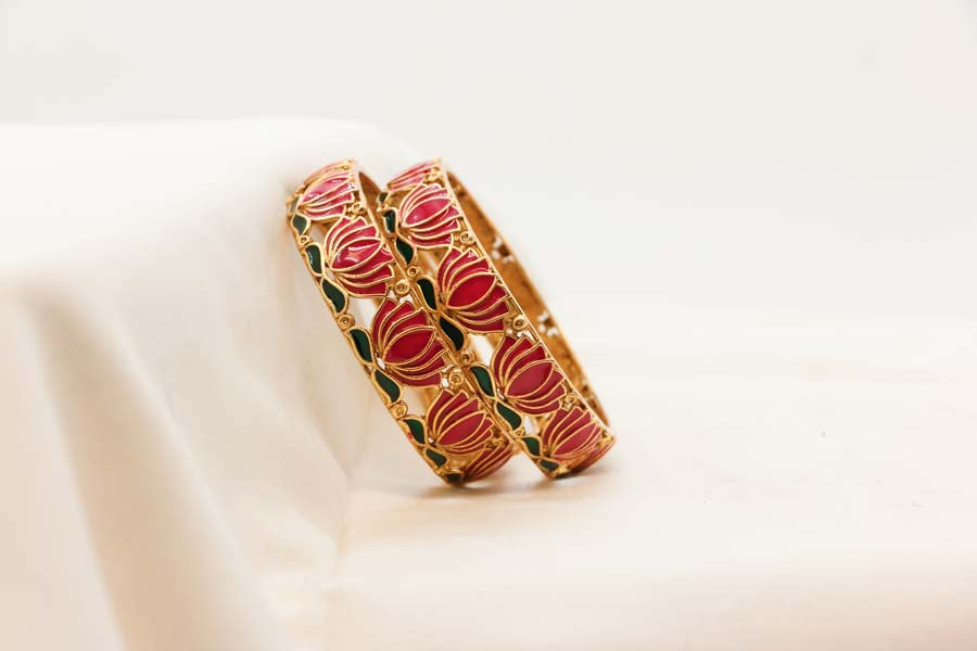 Elevate your wrist game with Ninikaa's exquisite Padma Kada Set, where traditional craftsmanship meets contemporary elegance. Each kada features intricate lotus motifs, symbolizing purity and grace in Indian heritage. Crafted with precision, this versatile duo seamlessly transitions from everyday wear to festive occasions. The timeless design complements both casual and formal ensembles, making it an essential addition to your jewelry collection. Perfect for gifting or personal indulgence, these kadas embody sophistication and cultural richness.